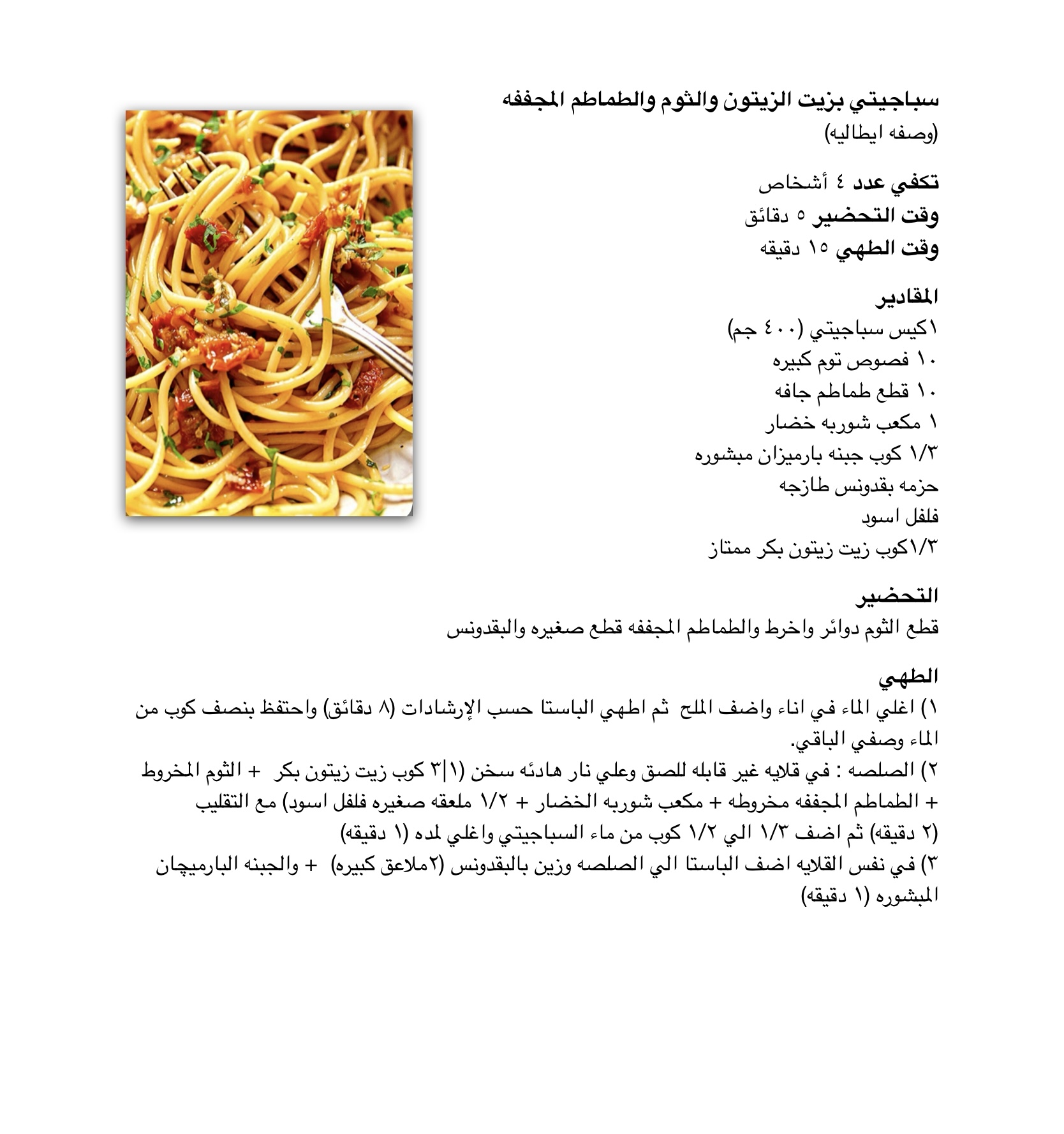 سباجيتي بالزيت والثوم