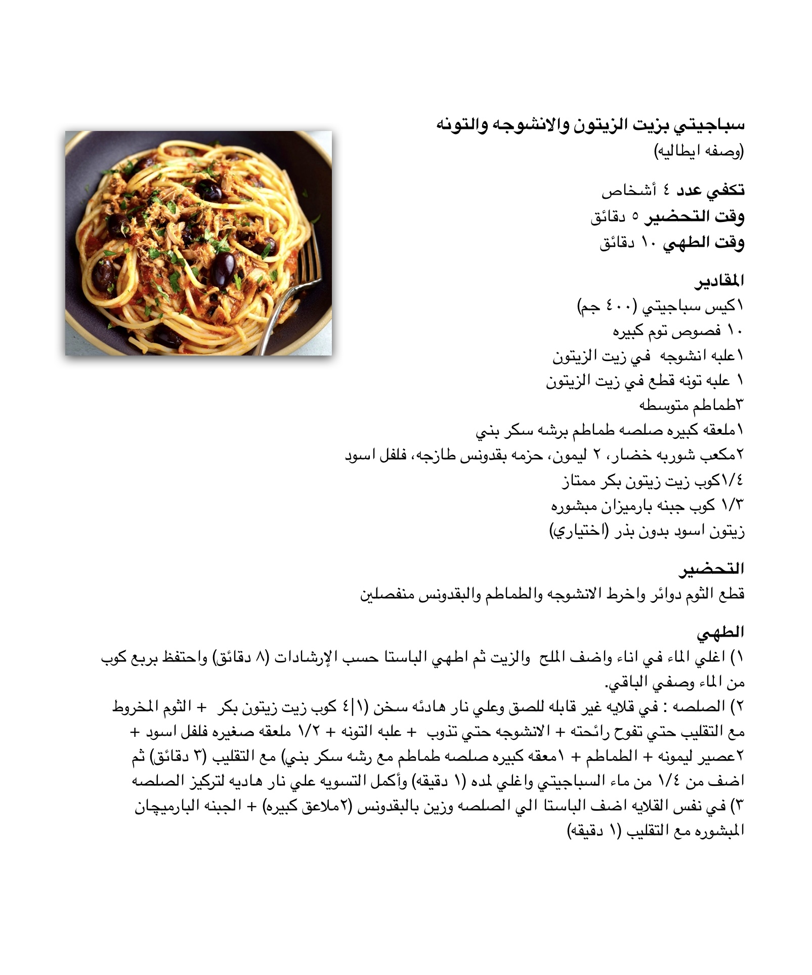 سباجيتي بالتونه والانشوجه